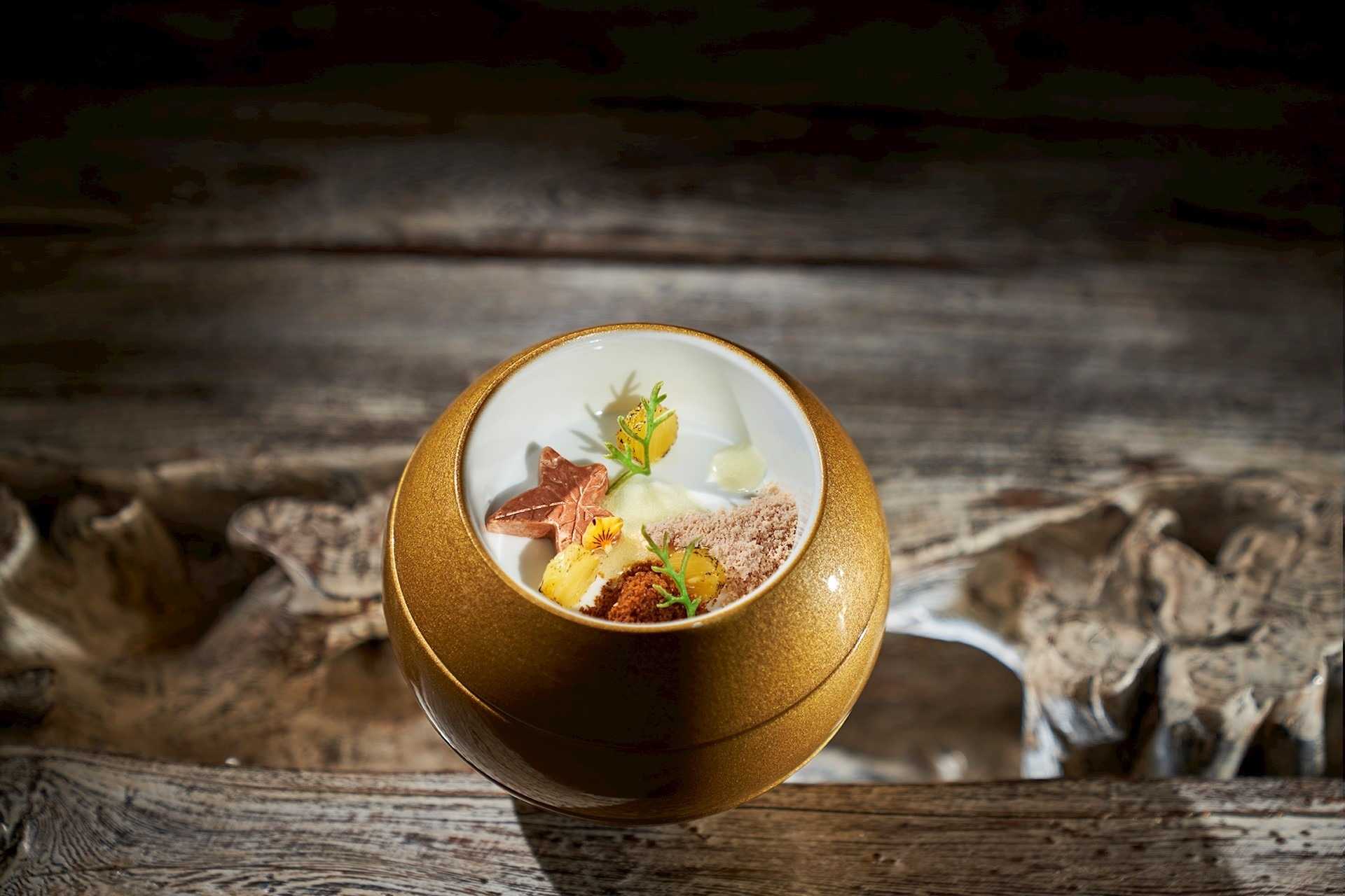 Welcome to Il Gallo D'Oro restaurant, located in the five-star Cliff Bay hotel on the island of Madeira, Portugal. Since 2004, French Chef Benoît Sinthon has been crafting innovative dishes that showcase the best of Iberian cuisine, emphasizing fresh, locally-sourced ingredients from Madeira and high-quality produce from Europe.